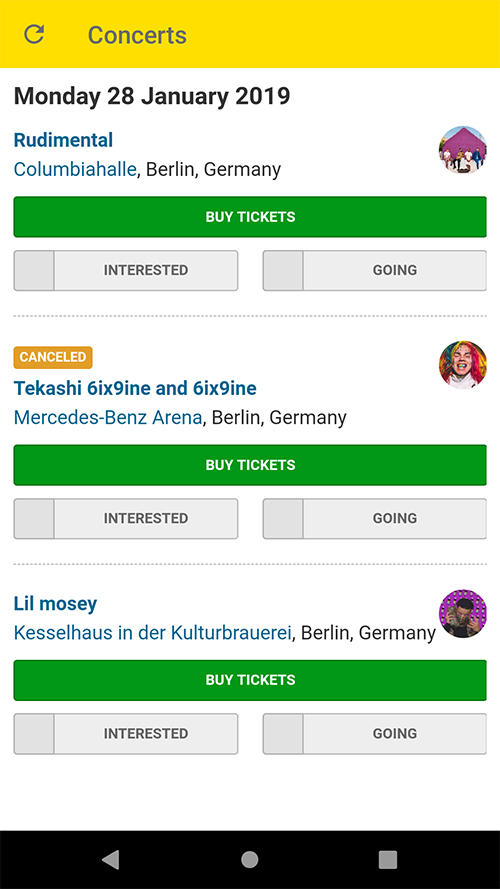 | Concert-export.zip | 42 kb | View all upcoming Concerts in Berlin and Hamburg, Germany. You can change the cities or add new ones by editing the URL. | Link |
